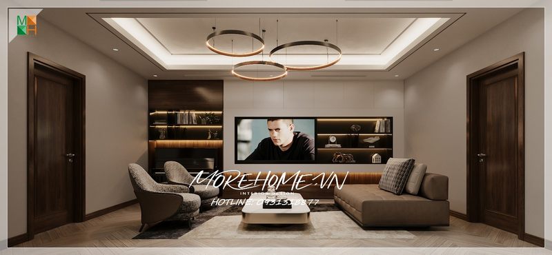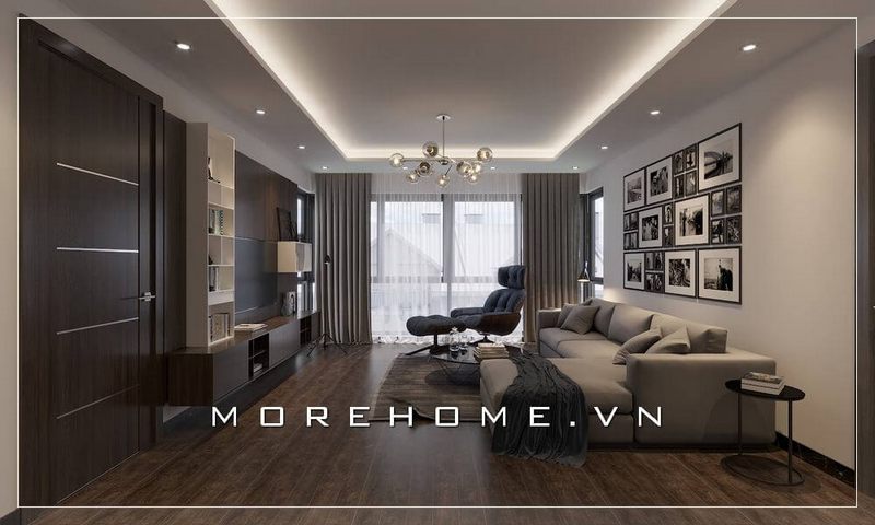 Mẫu thiết kế nội thất chung cư cao cấp sẽ làm bạn hài lòng với bọc sofa hiện đại kết hợp với kệ tủ trang trí đẹp, tạo nên một không gian sống tiện nghi, đáp ứng được mơ ước của bạn.